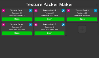 Texture Packer Maker is a tool for texture pack and sprite sheet creation with manual and automatic packing tools.